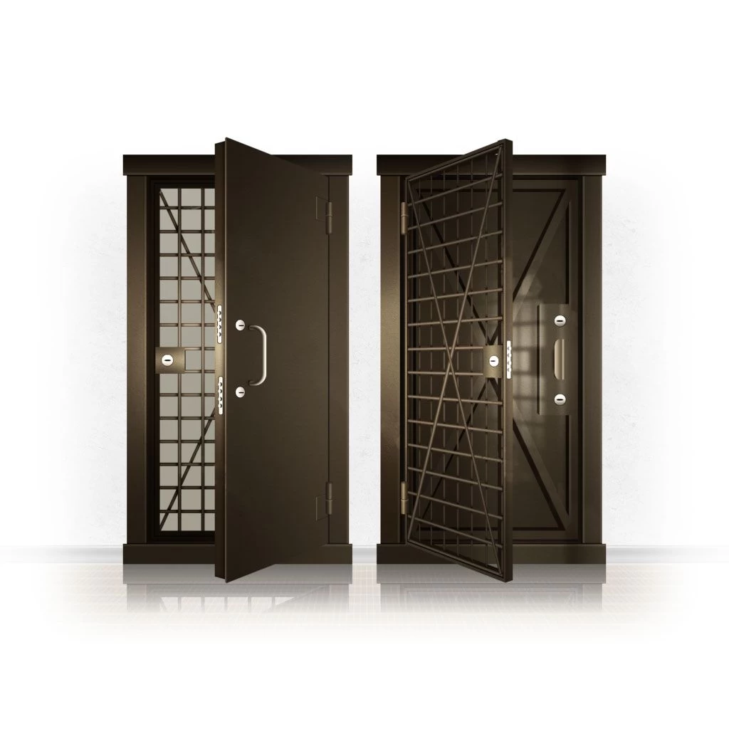 Металлические двери КХО и КХН представляют собой входные блоки, обладающие высоким уровнем взломостойкости и состоят из трех основных элементов: усиленного каркаса, сплошного металлического полотна и решетчатой двери. Дверной блок изготавливается из стального уголка 100*100 мм. Места крепления блока к стене цементируются и закрываются стальными наличниками шириной 40 мм. Крепеж заходит вглубь стены на 80 мм. В конструкции внешней створки монтируются ребра жесткости, для обшивки используется сталь толщиной не менее 3 мм. Внутренняя решетка изготавливается из прутка диаметром 16 мм. Размер ячеек решетки должен составлять не более 15 на 15 см. В точках пересечения прутья надежно приваривают друг к другу. В КХО и КХН необходимо поддерживать определенную температуру и влажность. Для этого внутреннее пространство глухой двери заполняется теплоизоляционным материалом, а по периметру двери приклеивается уплотнитель. Такие двери оборудуются замками с повышенным уровнем взломостойкости. Специализированные двери КХО и КХН в Инсаре могут быть оснащены сигнализацией, в конструкции могут быть проушины для навесного замка и элементами для опечатывания. Если идет речь о двери в комнату хранения оружия, в створке оборудуется окно для выдачи оружия и спец. средств, которое накрывается стальной дверцей.