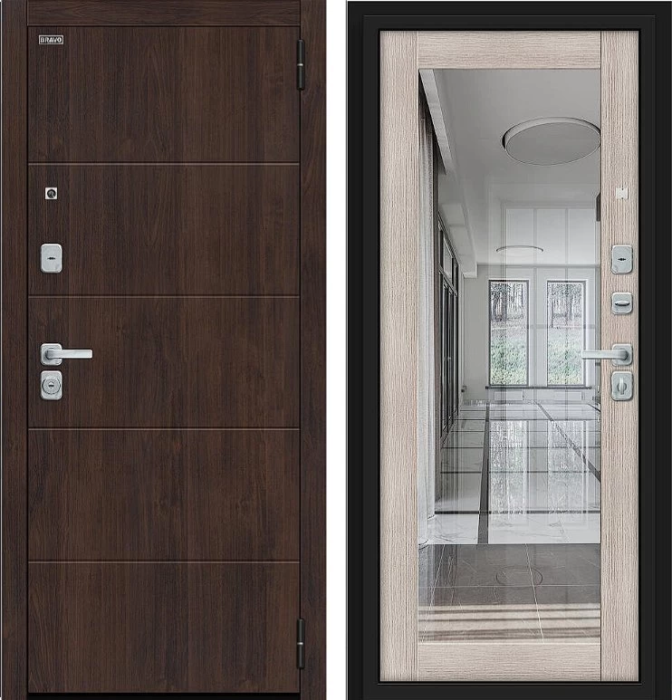Надежная входная Дверь Браво Флэт/BChrome Almon/Cappuccino Melinga премиум класса по цене 42 303 руб. Большая толщина стали защитит от проникновения в ваш дом, квартиру или коттедж. Используется очень качественная фурнитура: замки, цилиндры, ручки, защелки. Покрытие и отделка двери изготовлено под внимательным контролем производителя. Дверь имеет долгий срок службы и гарантию.