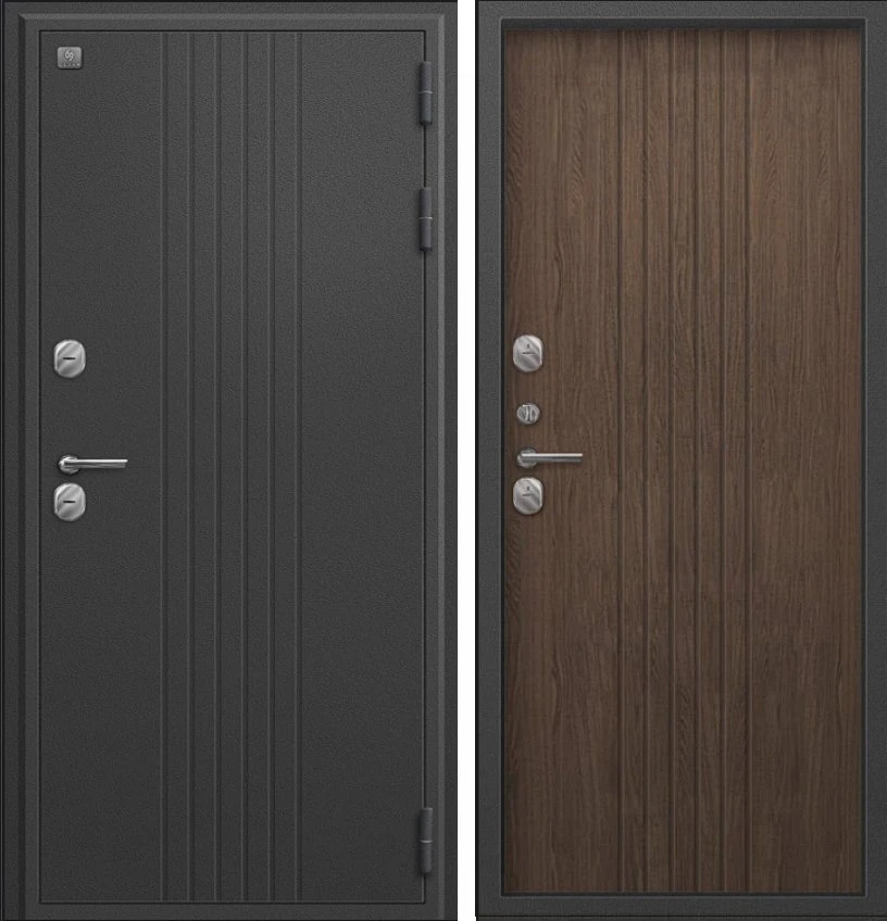 Надежная входная Дверь Термо-90 графит букле - миндаль рифлёный премиум класса по цене 38 103 руб. Большая толщина стали защитит от проникновения в ваш дом, квартиру или коттедж. Используется очень качественная фурнитура: замки, цилиндры, ручки, защелки. Покрытие и отделка двери изготовлено под внимательным контролем производителя. Дверь имеет долгий срок службы и гарантию.